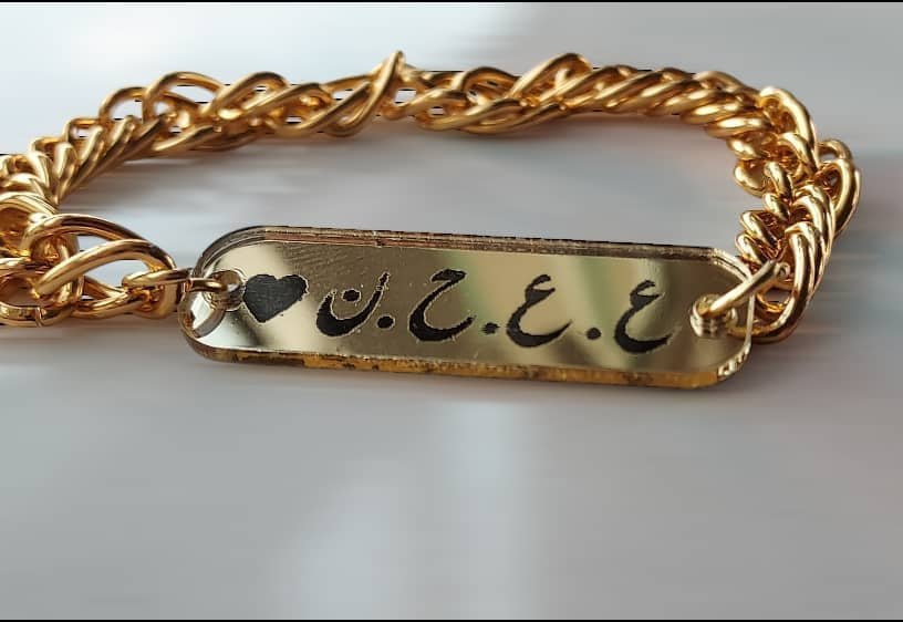 أساور عصرية محفور عليها عبارة “ع ع ح ن” لتمثيل الولاء والصداقة.